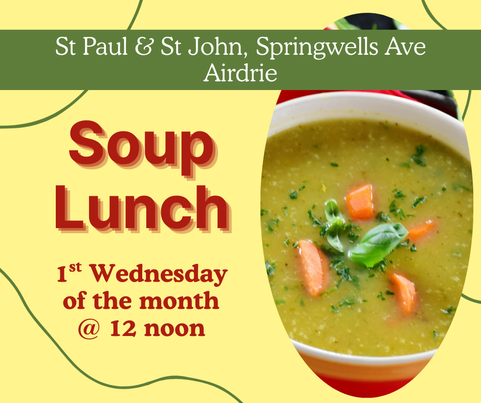 On the first Wednesday of the month we hold a Soup Lunch at 12 noon. There in no charge but donations are appreciated.